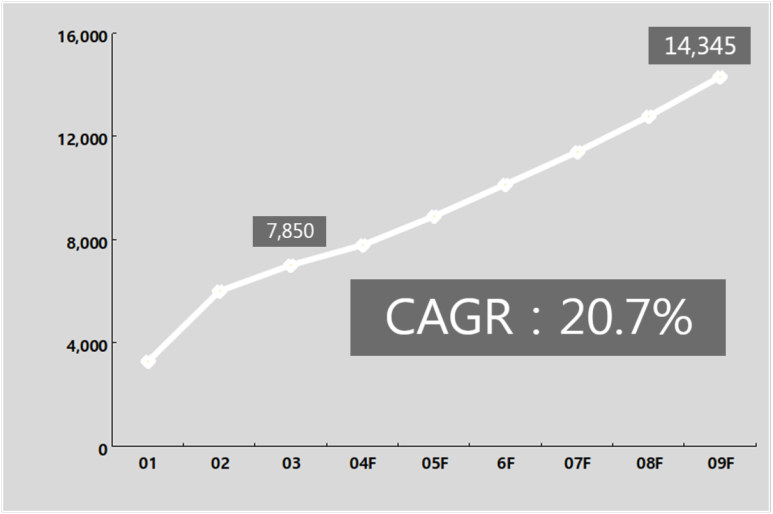 이때 가장 중요한 것은 CAGR의 수치가 연평균 1~2%의 변동성이나 이동성을 보이는 자료는 신뢰하면 안 돼요.